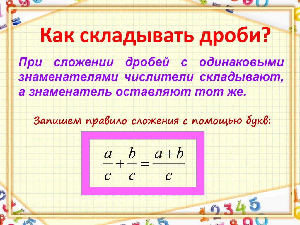 Как складывать дроби?При сложении дробей с одинаковыми