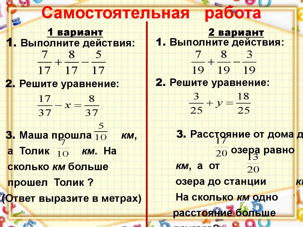 Сложение и вычитание обык дробей
