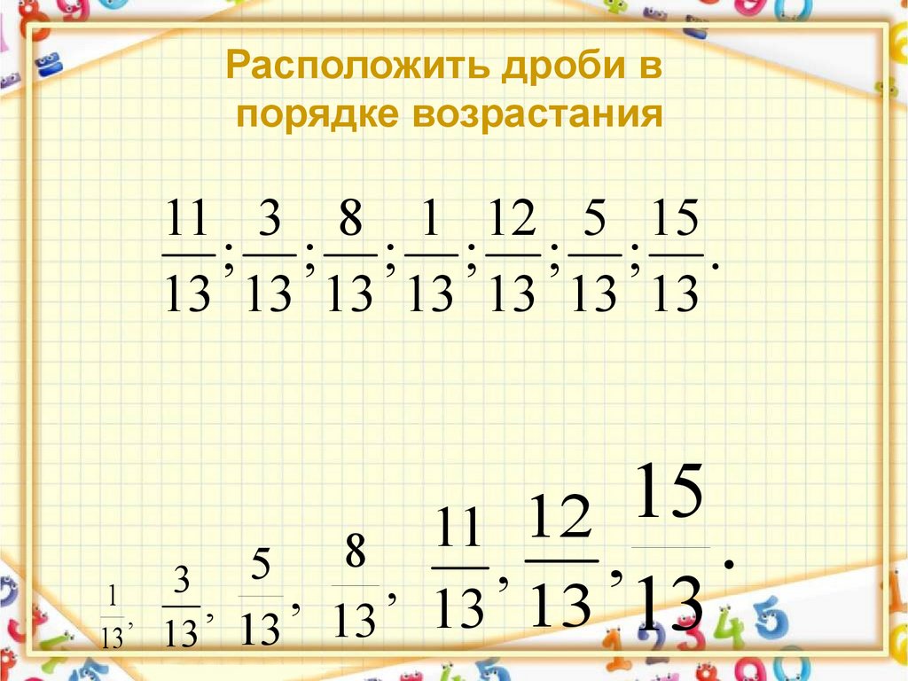 Расположить дроби впорядке возрастания