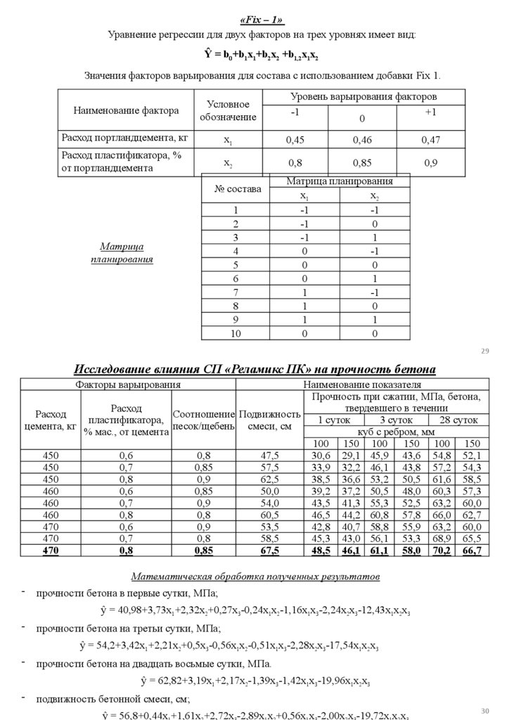 составлены уравнения регрессии позволяющие моделировать состав цементной композиции в