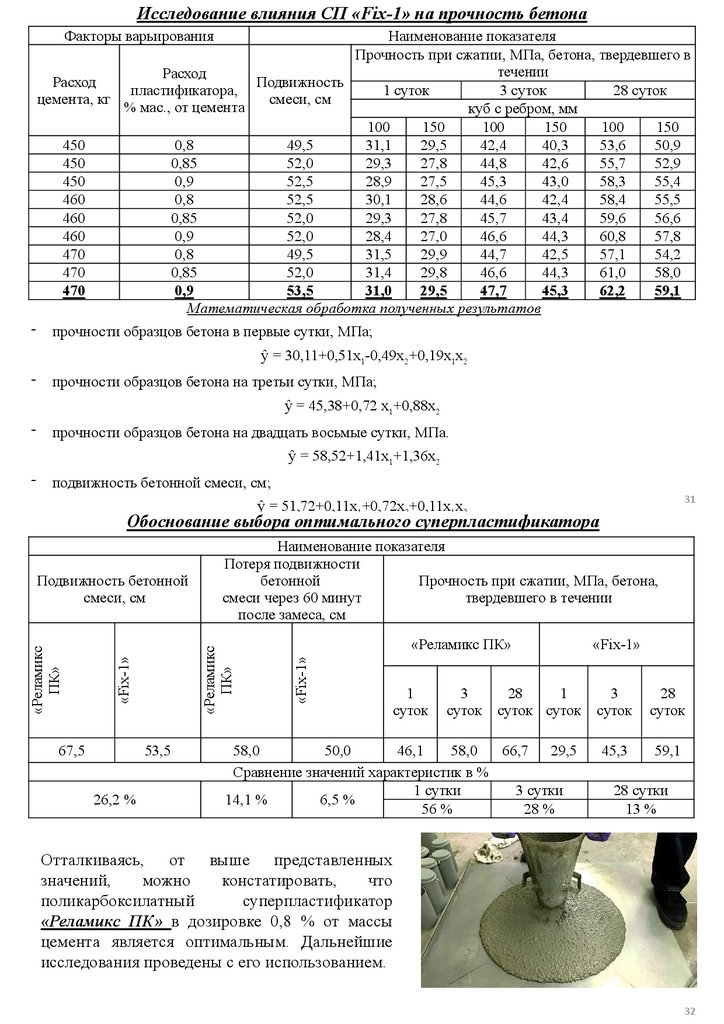 Оценка вида и количества добавок на самоуплотняющейся бетонной смеси и бетона