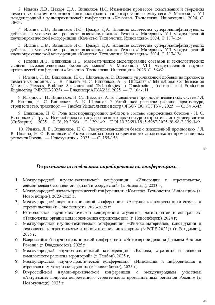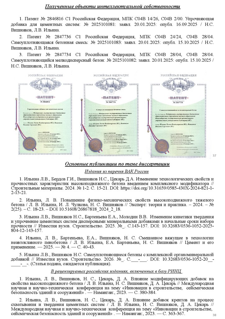 изобретение № RU 2 847 736 C1), «Самоуплотняющаяся бетонная смесь»);