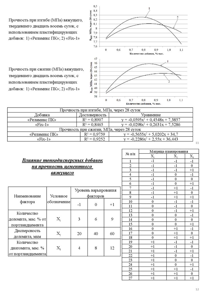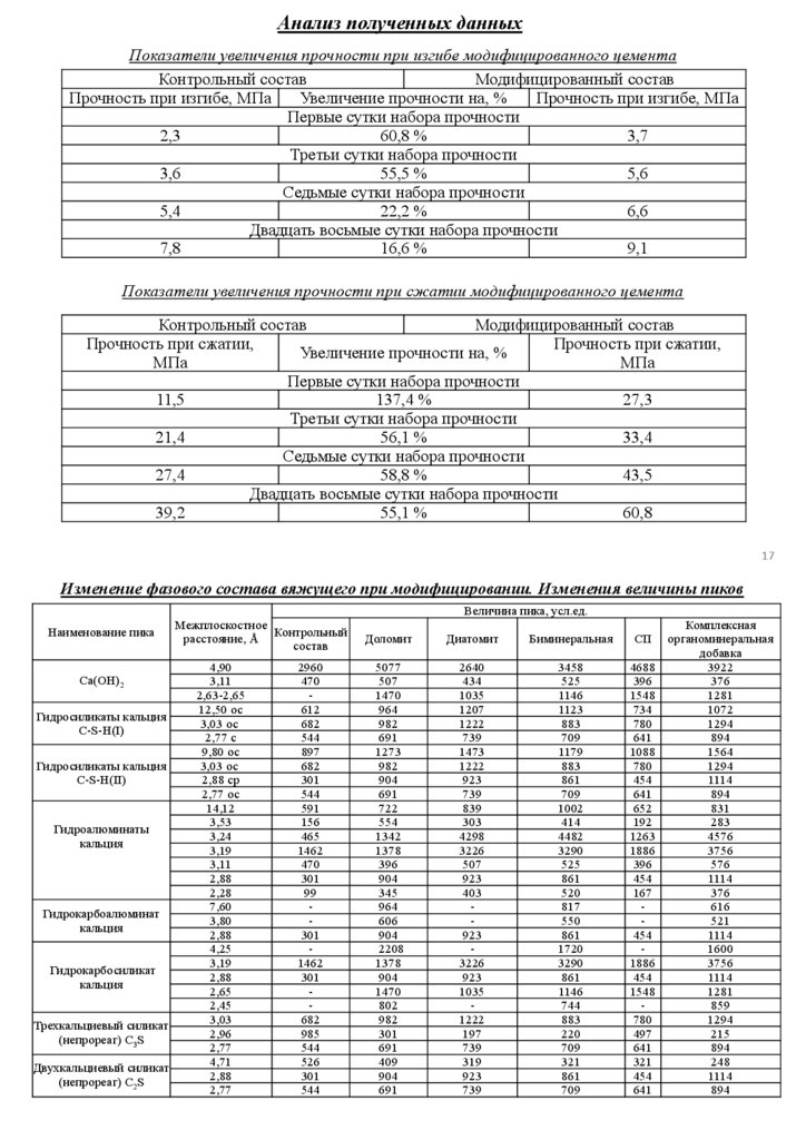 матрицы в цементных композитах. На основе экспериментальных данных, полученных при