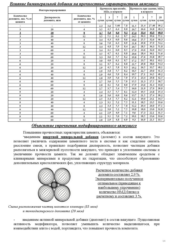 •дисперсной пуццолановой добавки (диатомит) способной снижать количество