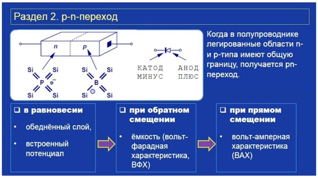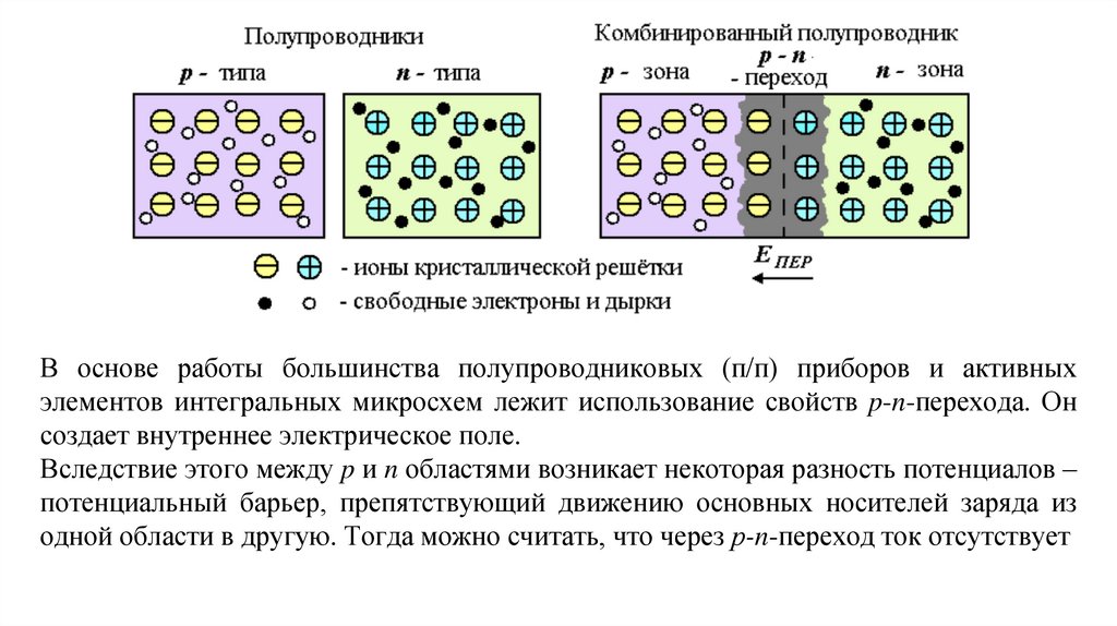 В основе работы большинства полупроводниковых (п/п) приборов и активныхэлементов интегральных микросхем лежит использование свойств p-n-перехода. Он