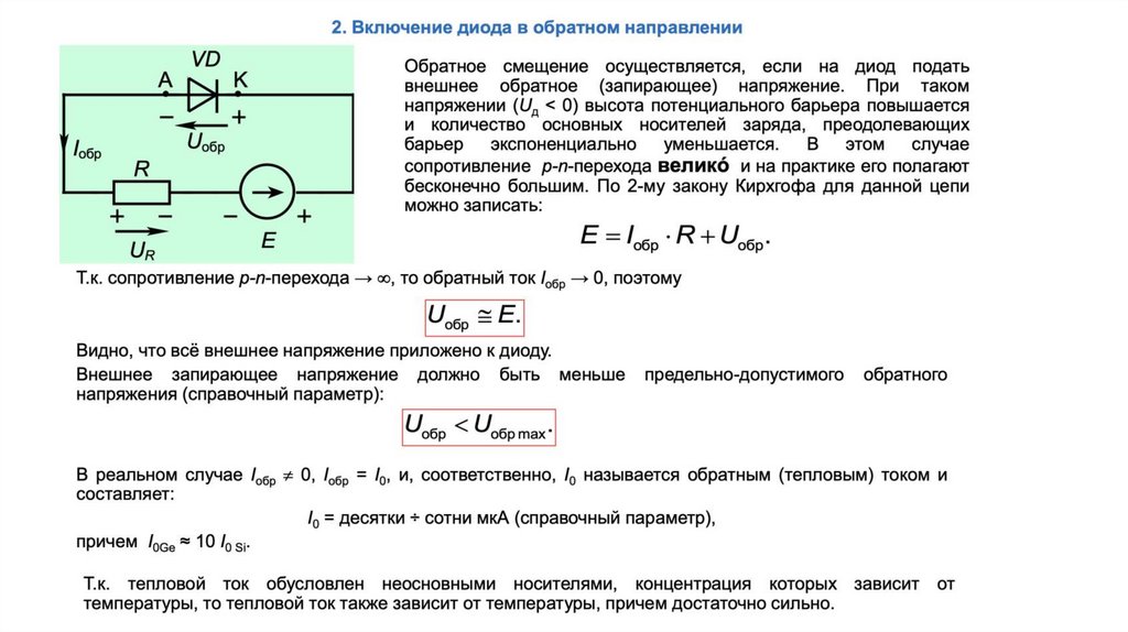 одной области в другую. Тогда можно считать, что через р-n-переход ток отсутствует