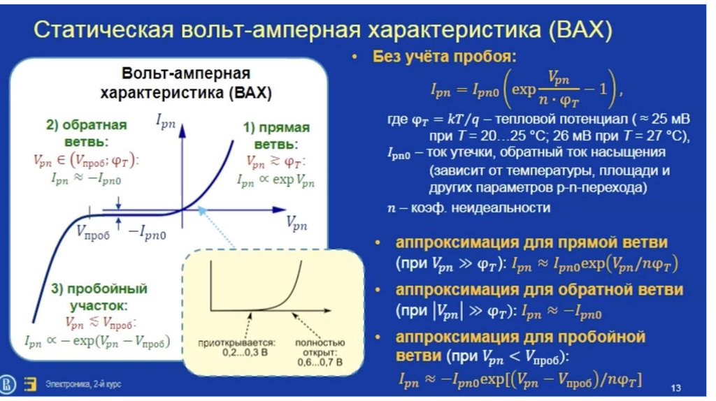 Вследствие этого между p и n областями возникает некоторая разность потенциалов –