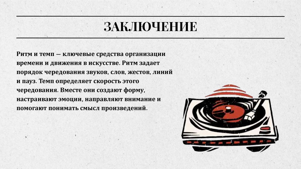 ЗАКЛЮЧЕНИЕРитм и темп — ключевые средства организации