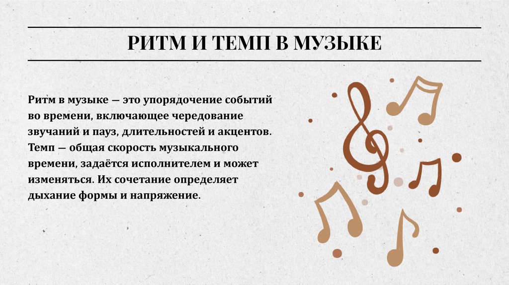РИТМ И ТЕМП В МУЗЫКЕРитм в музыке — это упорядочение событий
