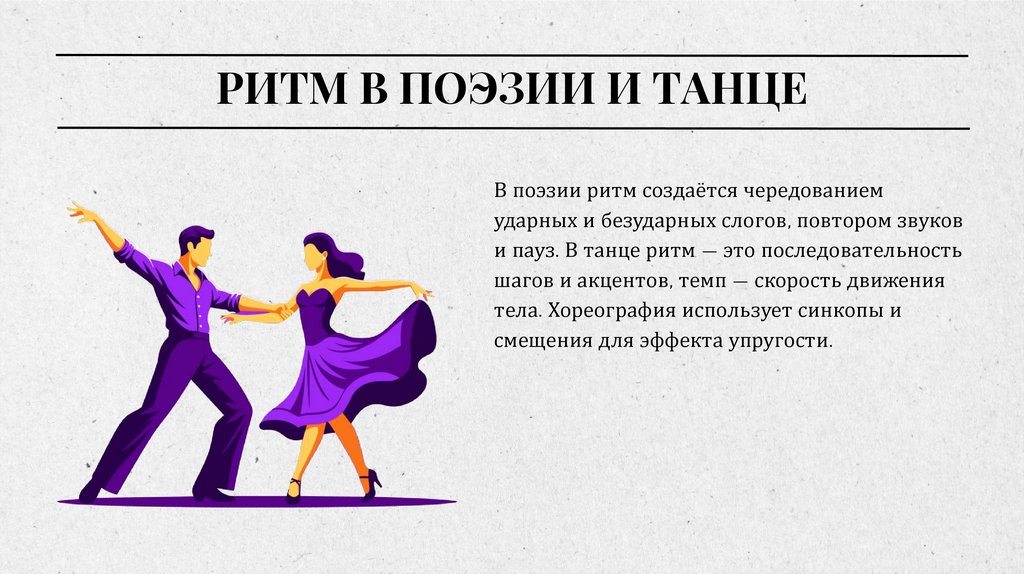 РИТМ В ПОЭЗИИ И ТАНЦЕВ поэзии ритм создаётся чередованием