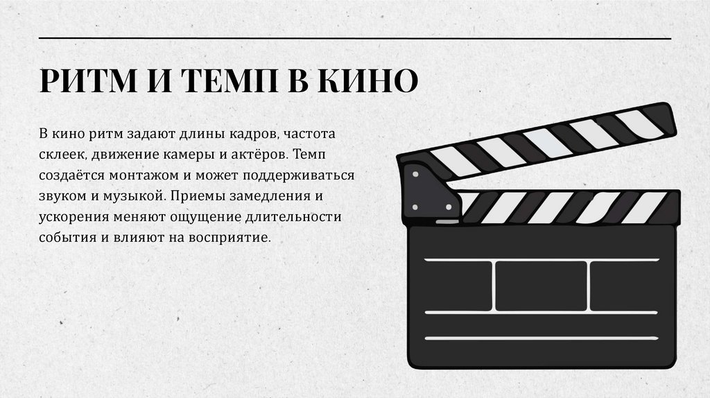 РИТМ И ТЕМП В КИНОВ кино ритм задают длины кадров, частота