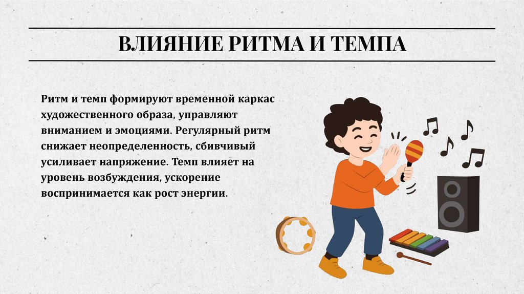 ВЛИЯНИЕ РИТМА И ТЕМПАРитм и темп формируют временной каркас