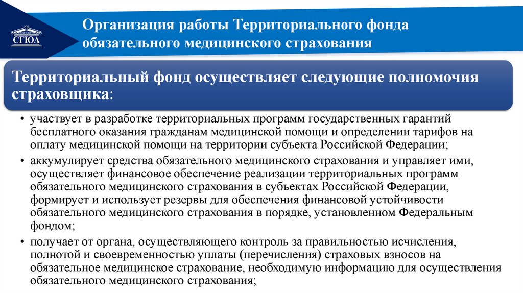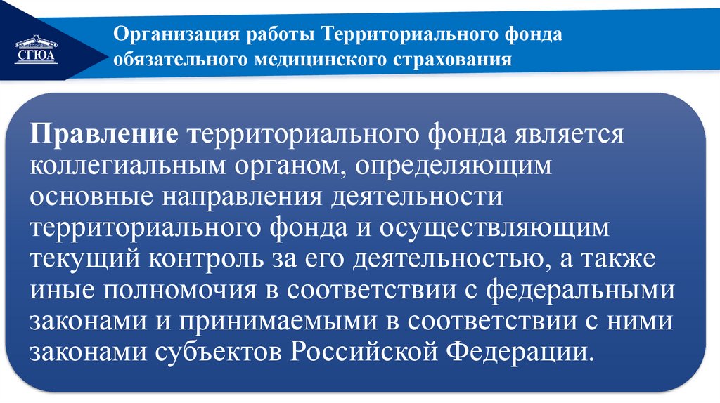 • выполнения функций органа управления территориального фонда.