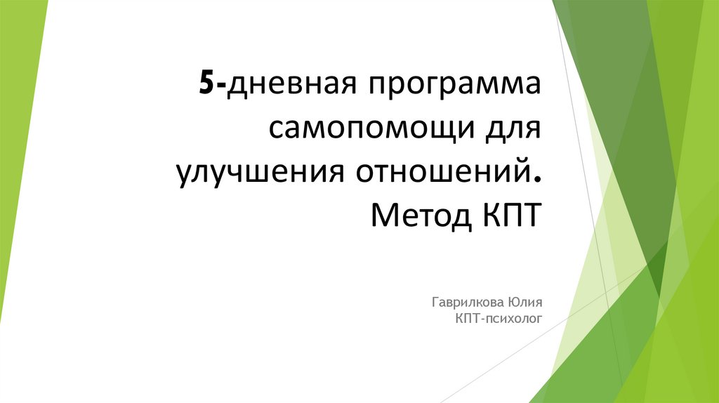 1. 5-дневная программа самопомощи для улучшения отношений. Метод КПТ