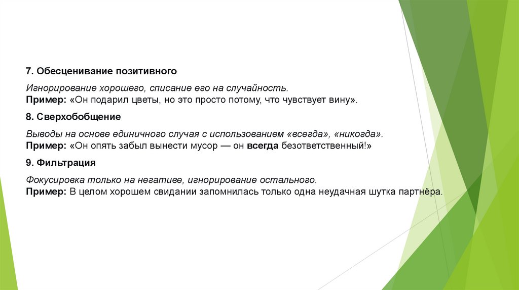 7. Обесценивание позитивногоИгнорирование хорошего, списание его на случайность.