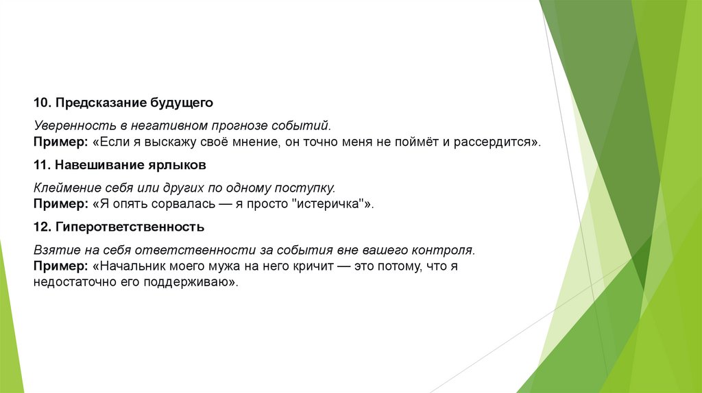10. Предсказание будущегоУверенность в негативном прогнозе событий.