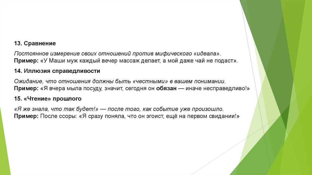 13. СравнениеПостоянное измерение своих отношений против мифического «идеала».