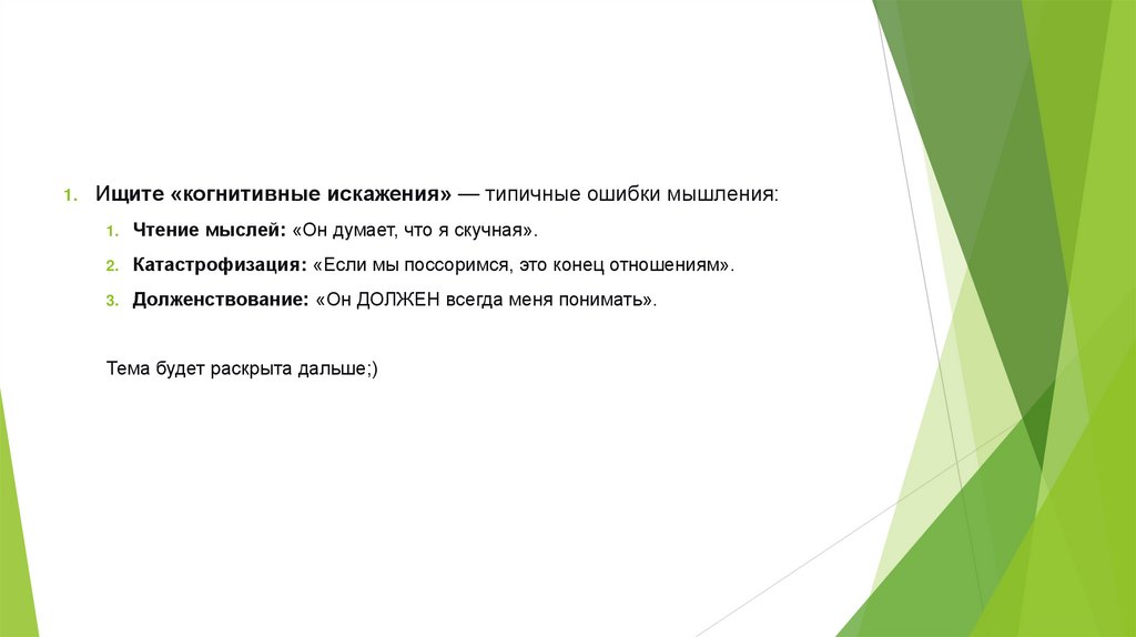 1.Ищите «когнитивные искажения» — типичные ошибки мышления: