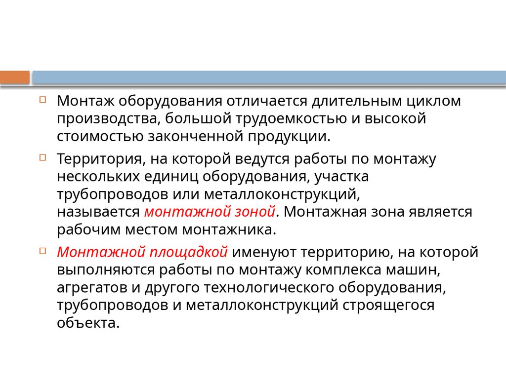 Монтаж оборудования отличается длительным цикломпроизводства, большой трудоемкостью и высокой
