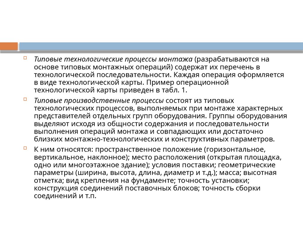 Типовые технологические процессы монтажа (разрабатываются наоснове типовых монтажных операций) содержат их перечень в