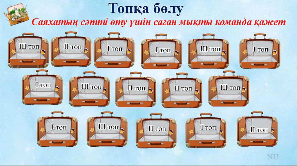 Топқа бөлуСаяхатың сәтті өту үшін саған мықты команда қажет