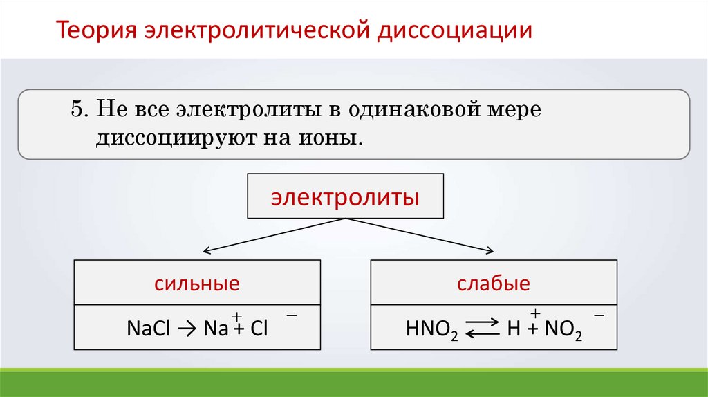 Теория электролитической диссоциации5. Не все электролиты в одинаковой мере