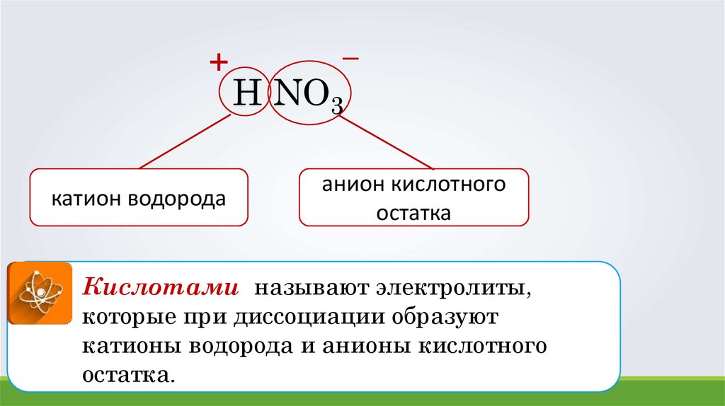 катионы водорода и анионы кислотного