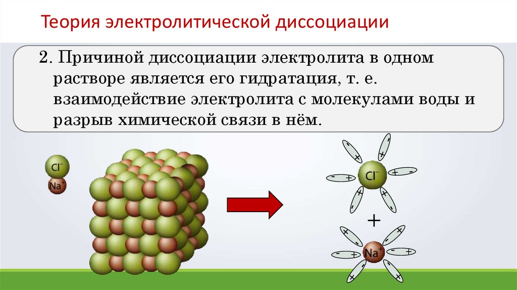 Теория электролитической диссоциации2. Причиной диссоциации электролита в одном