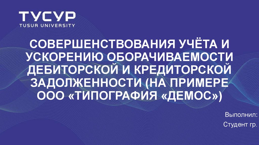 1. СОВЕРШЕНСТВОВАНИЯ УЧЁТА И УСКОРЕНИЮ ОБОРАЧИВАЕМОСТИ ДЕБИТОРСКОЙ И КРЕДИТОРСКОЙ ЗАДОЛЖЕННОСТИ (НА ПРИМЕРЕ ООО «ТИПОГРАФИЯ