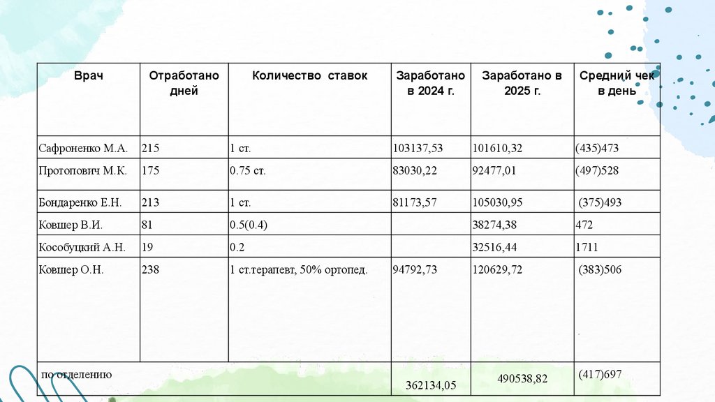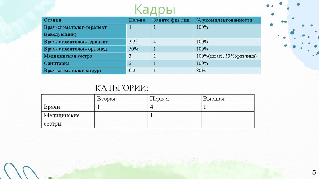 1 ст.терапевт, 50% ортопед.