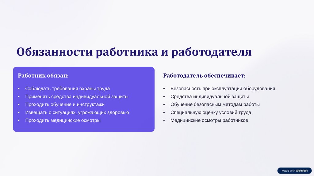 Обязанности работника и работодателяРаботник обязан: