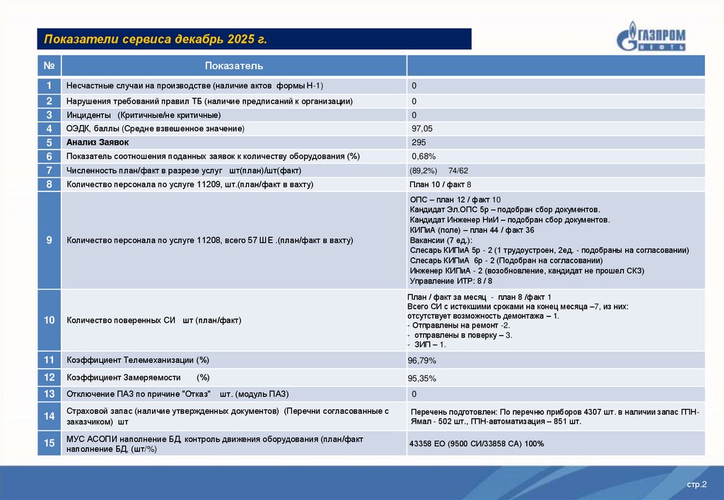 Показатели сервиса декабрь 2025 г.№