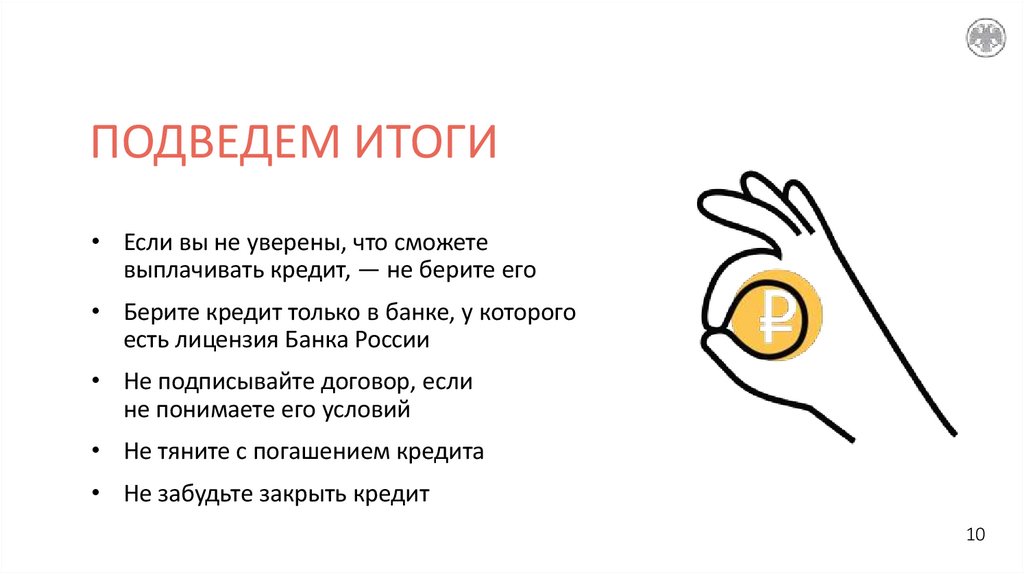9. НЕ ЗАБУДЬТЕ ЗАКРЫТЬ КРЕДИТ