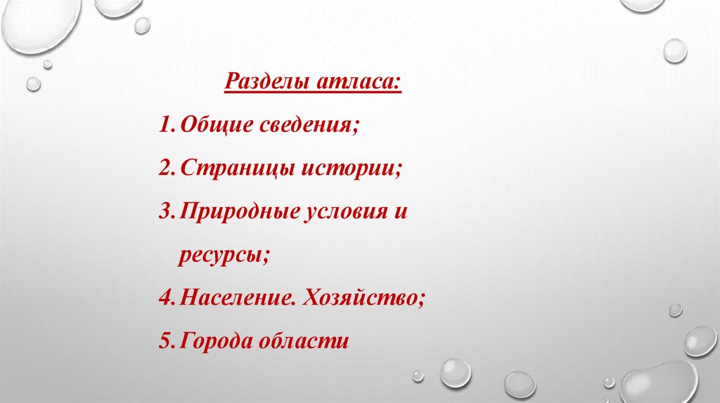 Разделы атласа:1.Общие сведения;