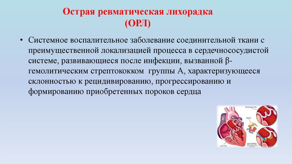 • Повторная атака (рецидив) ОРЛ провоцируется БГСА-инфекцией и проявляется