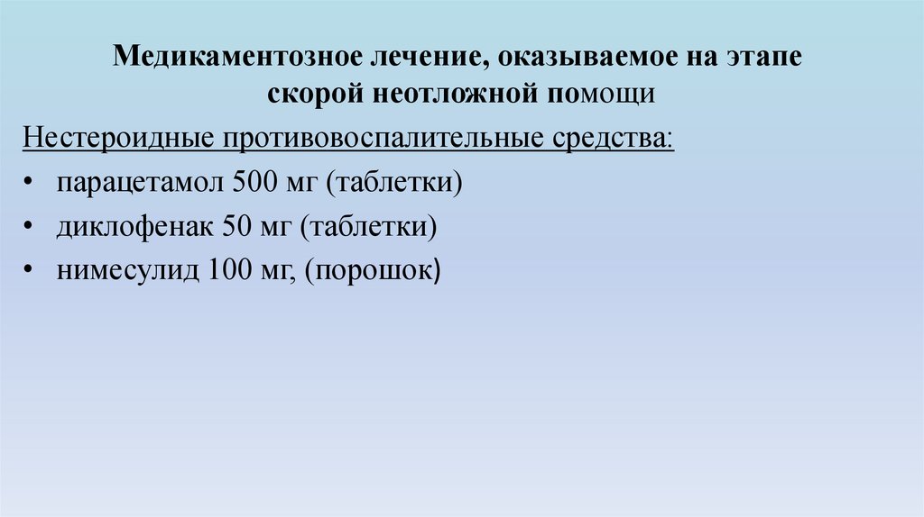 Медикаментозное лечение, оказываемое на этапескорой неотложной помощи