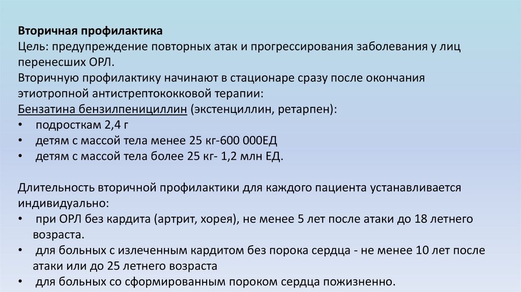 Длительность вторичной профилактики для каждого пациента устанавливается