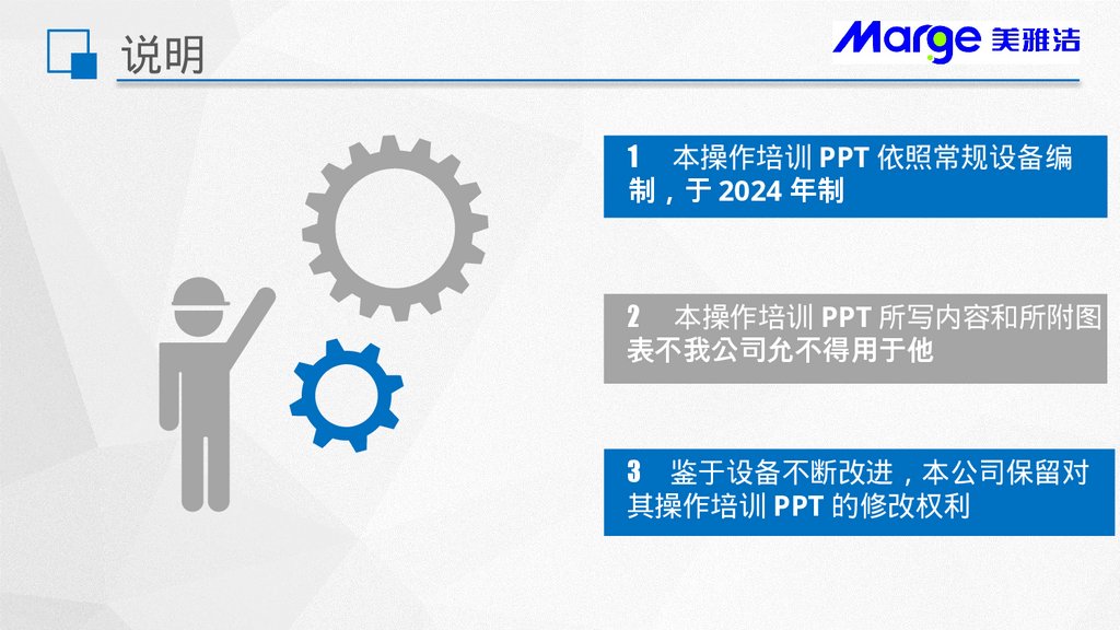 说明1 本操作培训 PPT 依照常规设备编