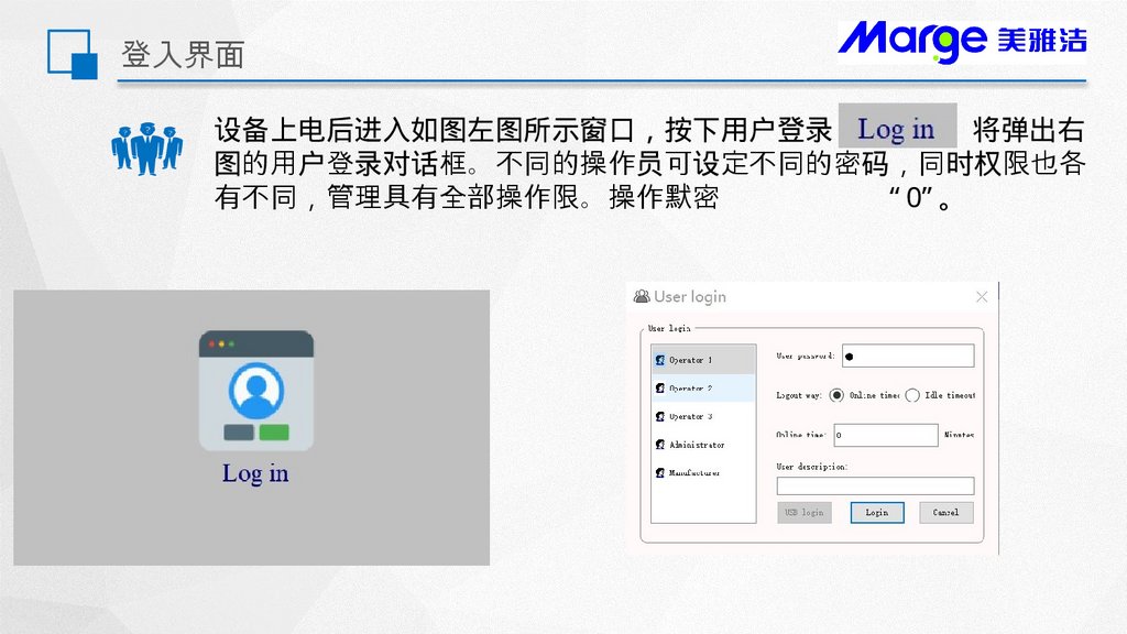 登入界面设备上电后进入如图左图所示窗口 按下用户登录