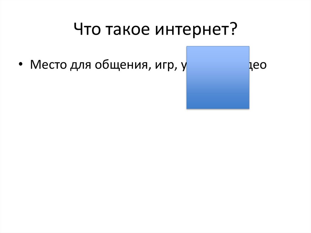 Что такое интернет?• Место для общения, игр, учебы и видео