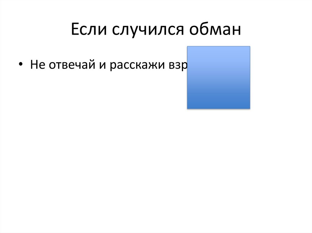 Если случился обман• Не отвечай и расскажи взрослым