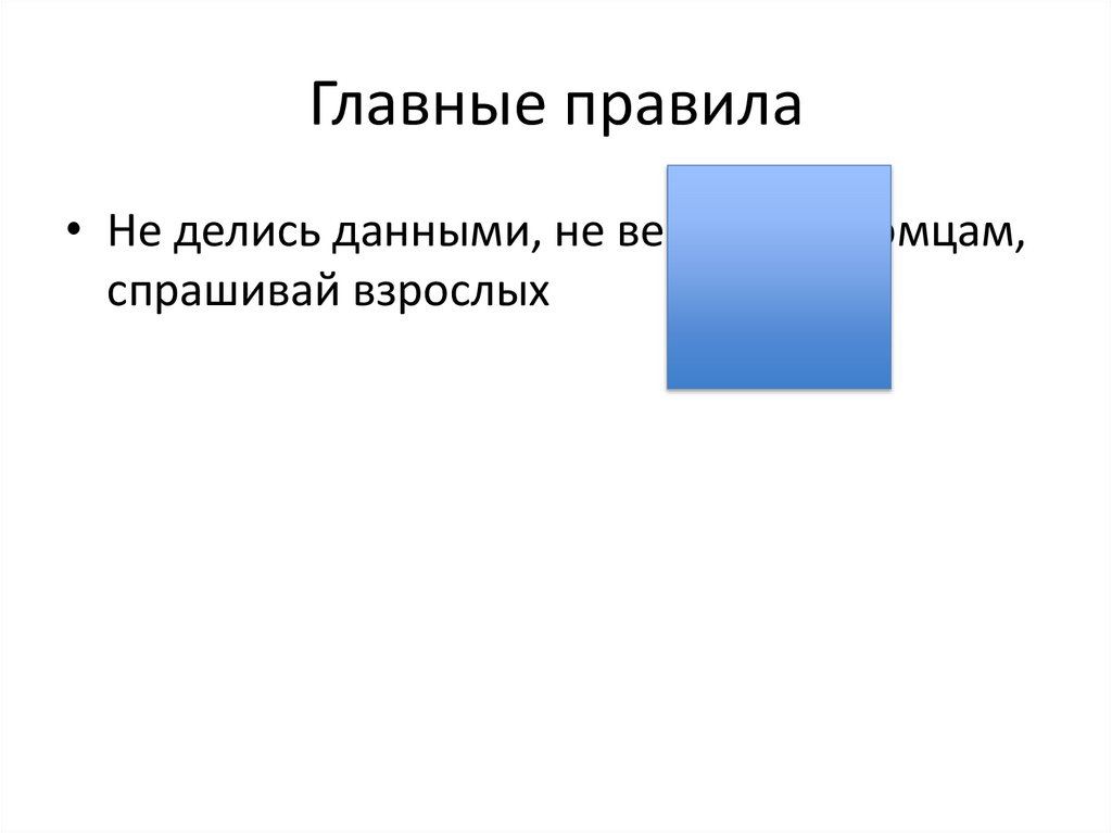 Главные правила• Не делись данными, не верь незнакомцам,