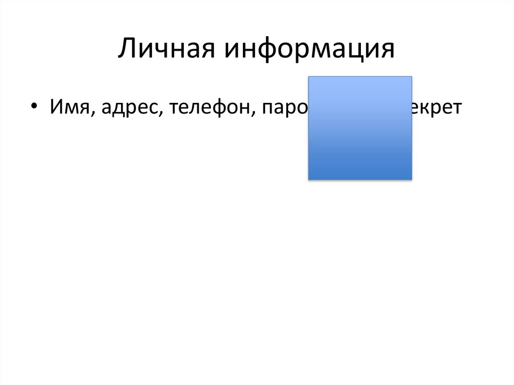 Личная информация• Имя, адрес, телефон, пароль — это секрет