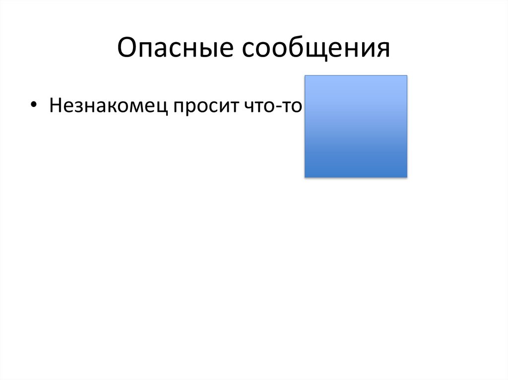 Опасные сообщения• Незнакомец просит что-то прислать