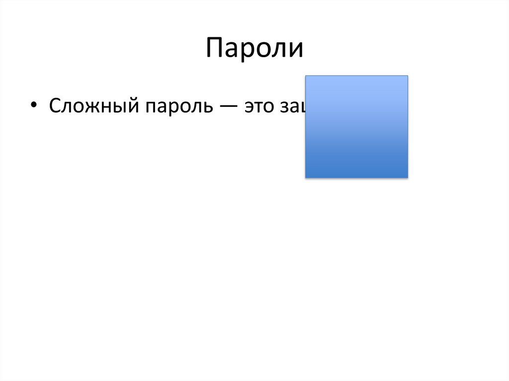 Пароли• Сложный пароль — это защита