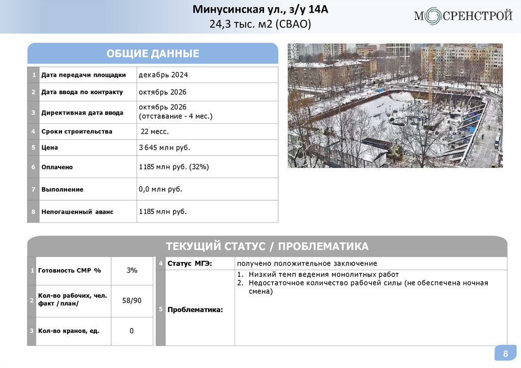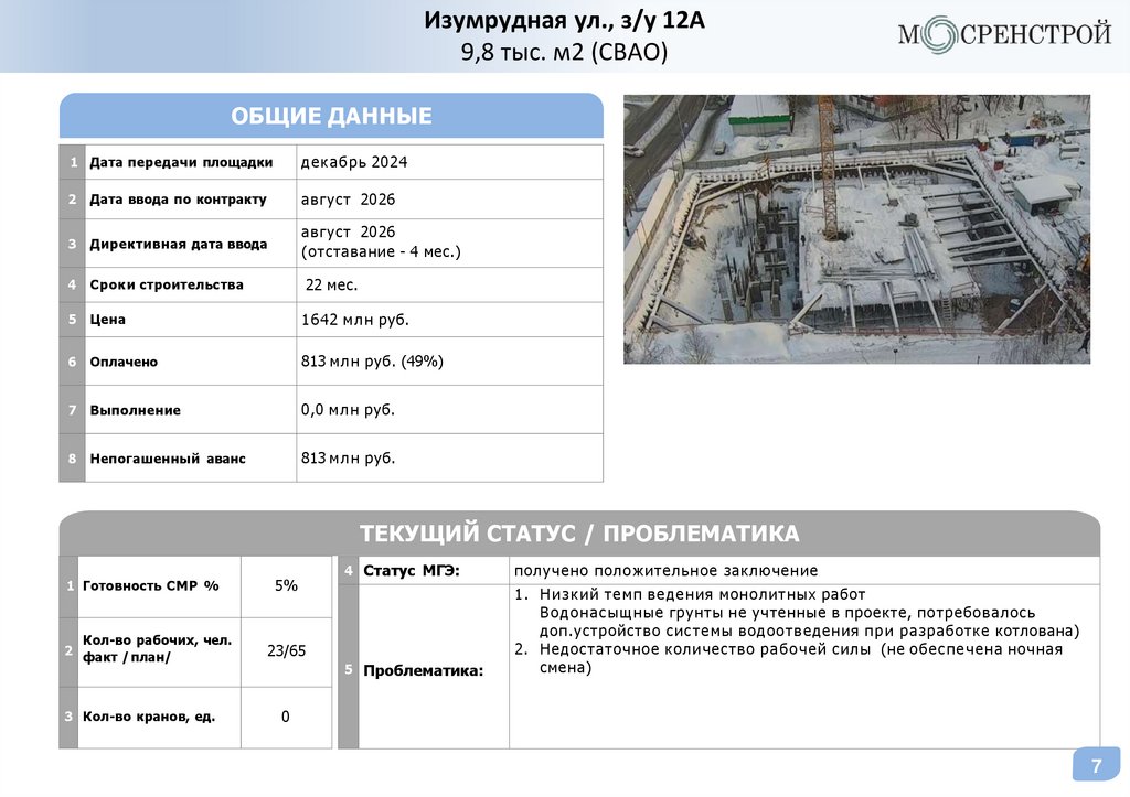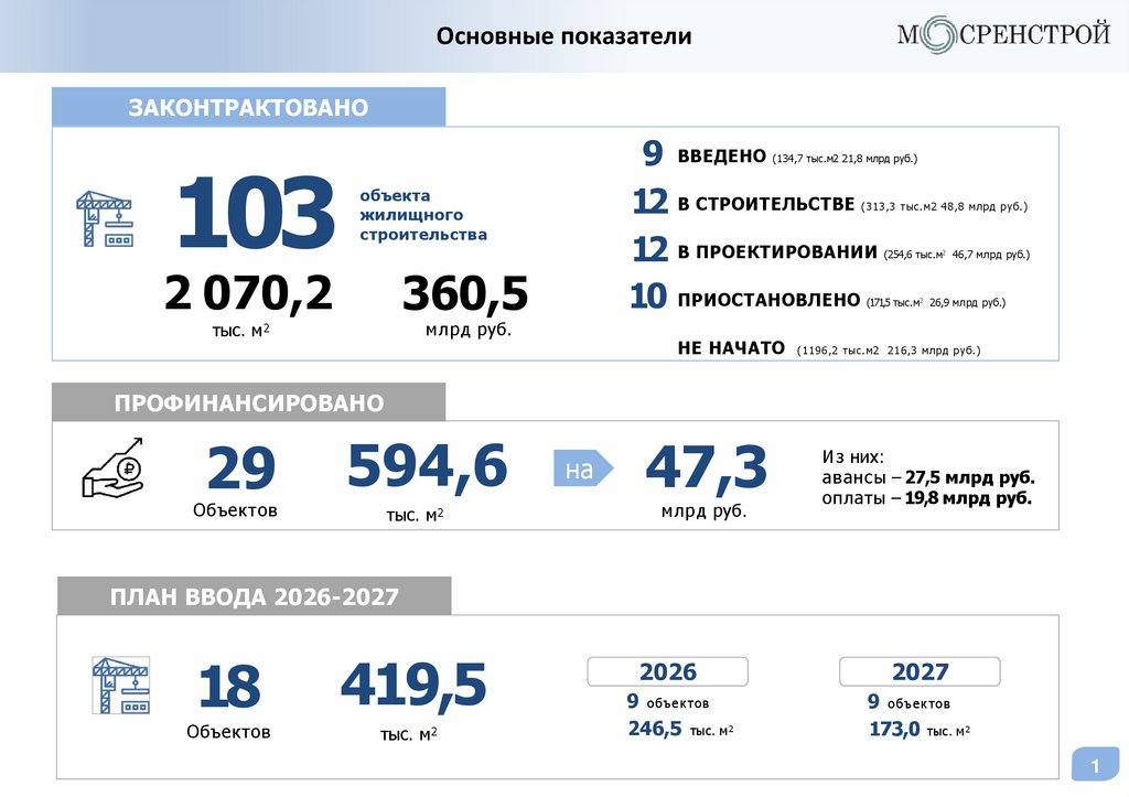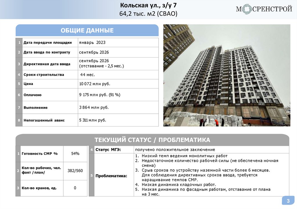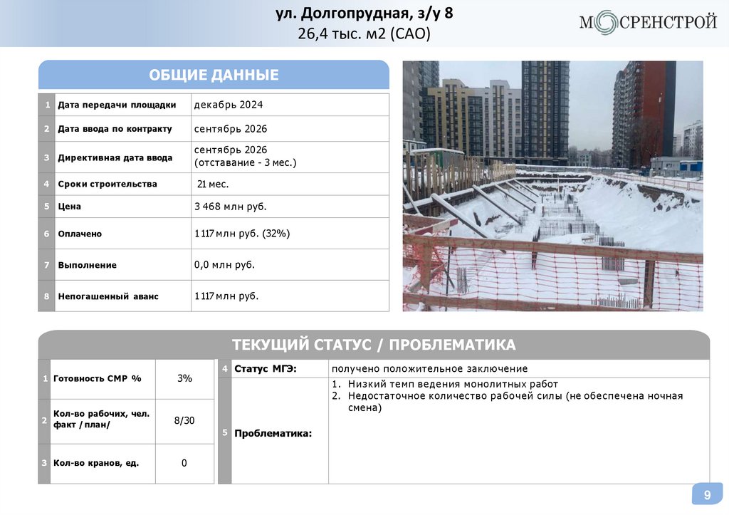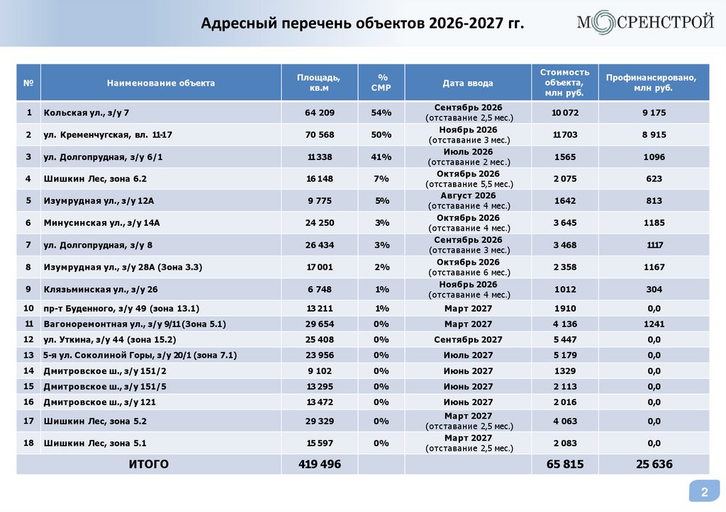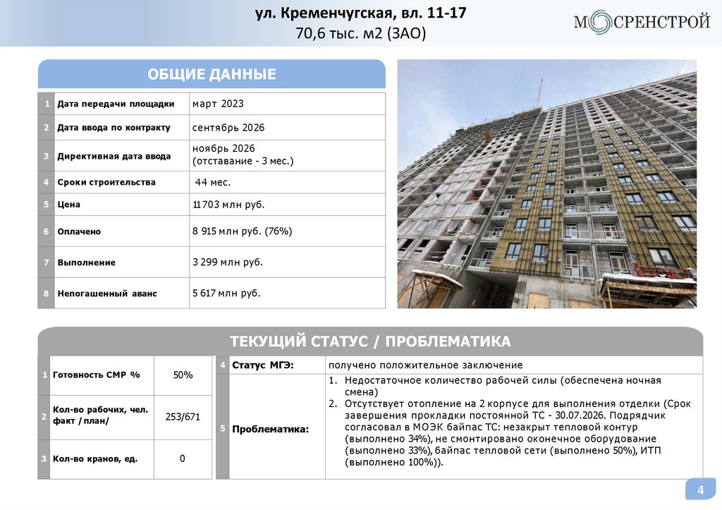 Статус объектовГК «МОСРЕНСТРОЙ»