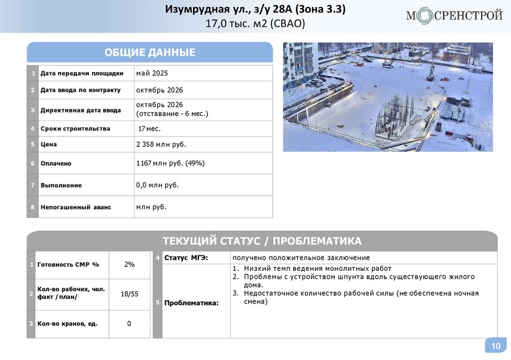 наращивание темпов СМР.