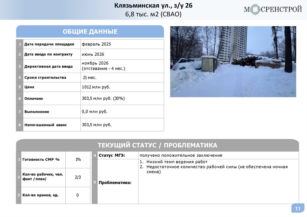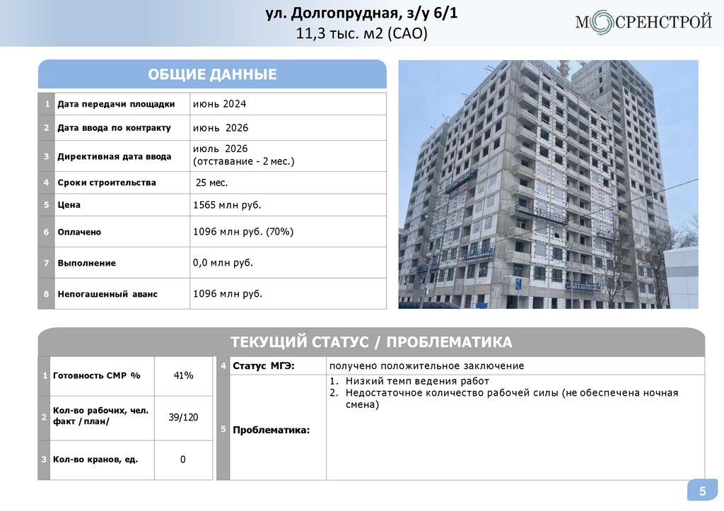 5. Низкая динамика по фасадным работам, отставание от плана