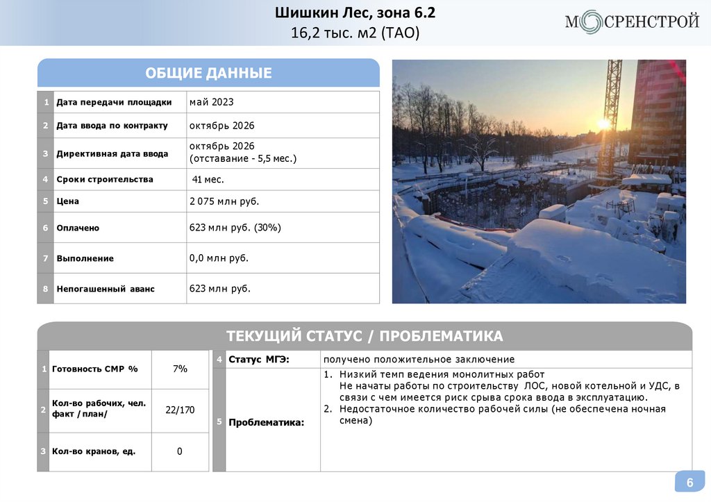 3 . Ср ыв сроков по устройству наземной части более 6 месяцев.
