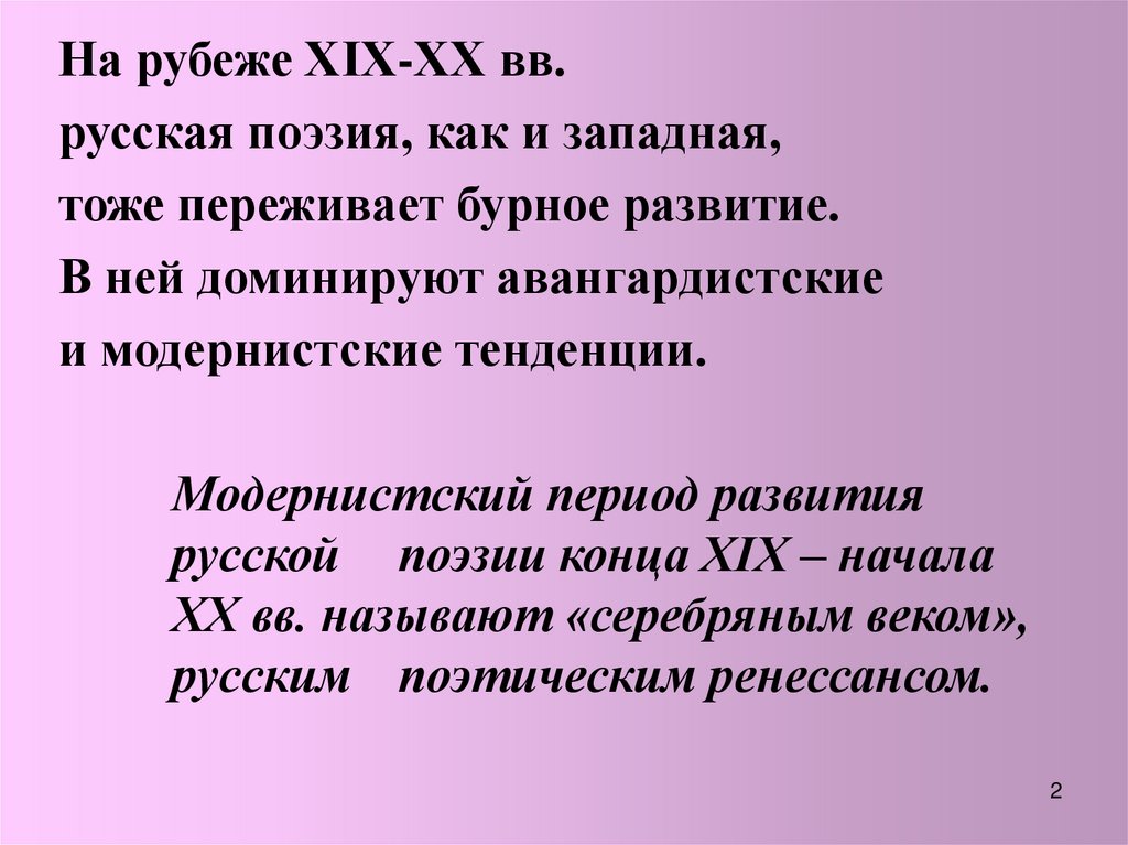 На рубеже ХIХ-ХХ вв.русская поэзия, как и западная,